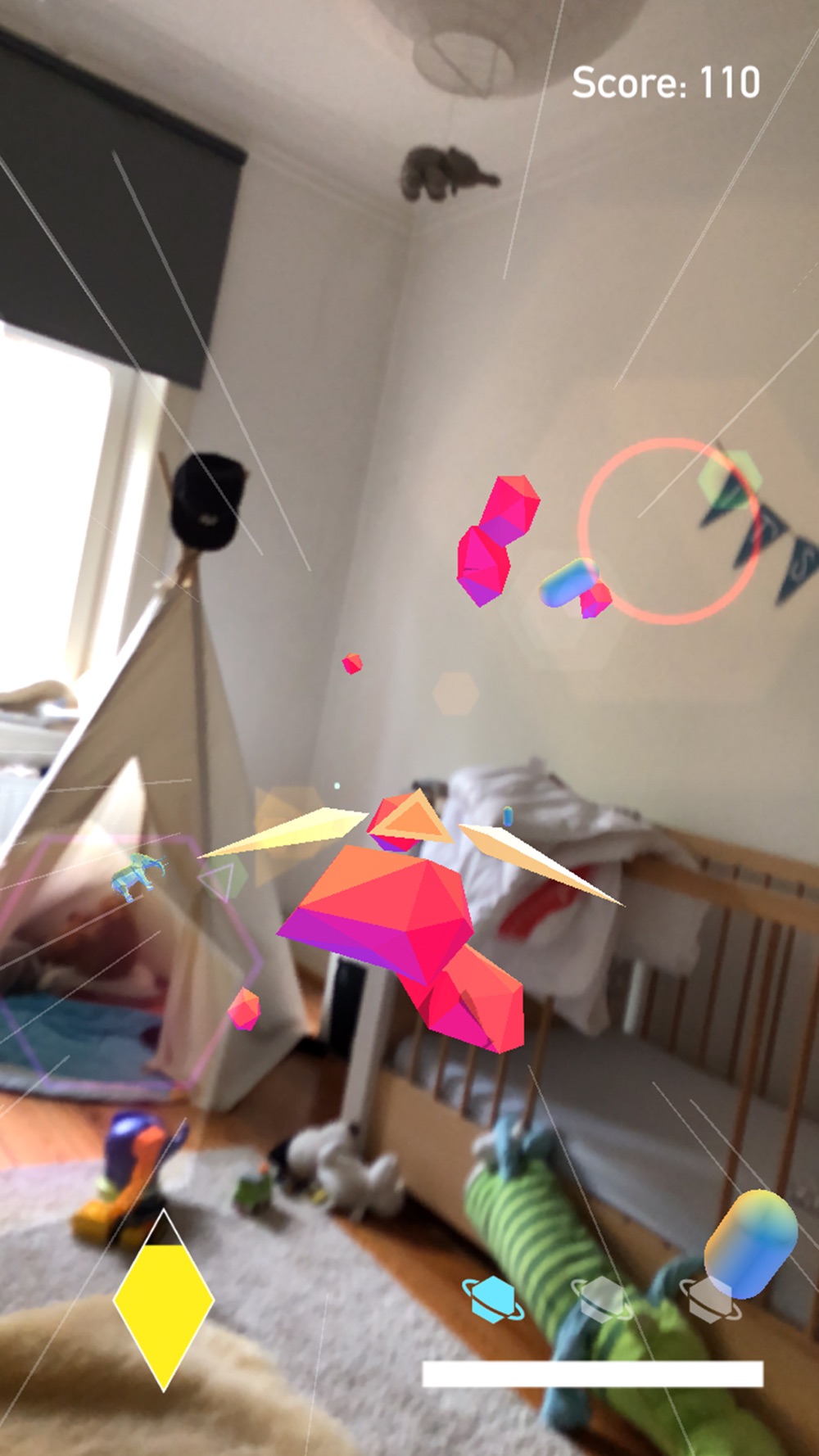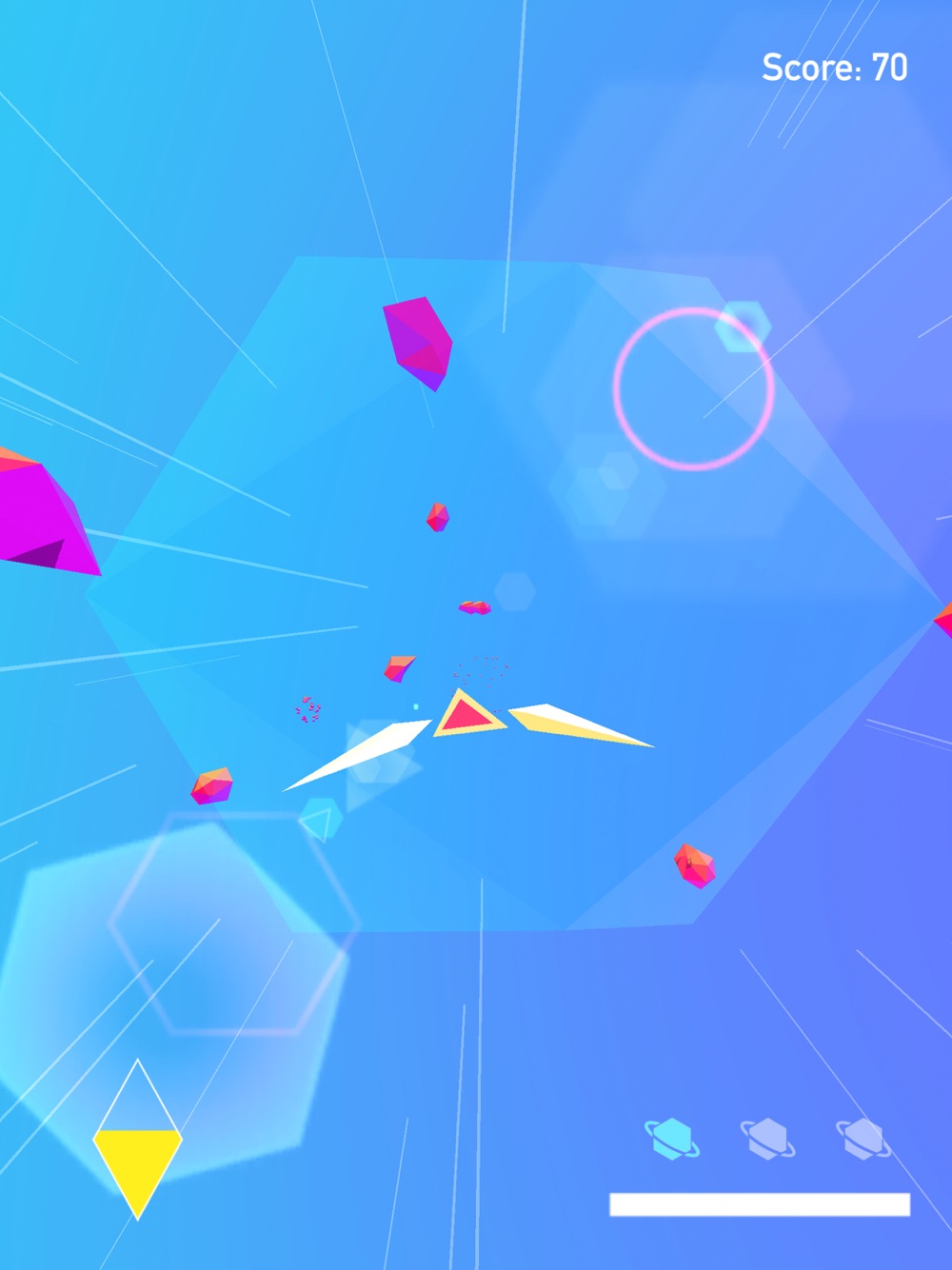 Beam yourself into space, select your spaceship and destroy things passing by or collect items to unlock new shuttles. Move your mobile device – or better: your whole body – to play.