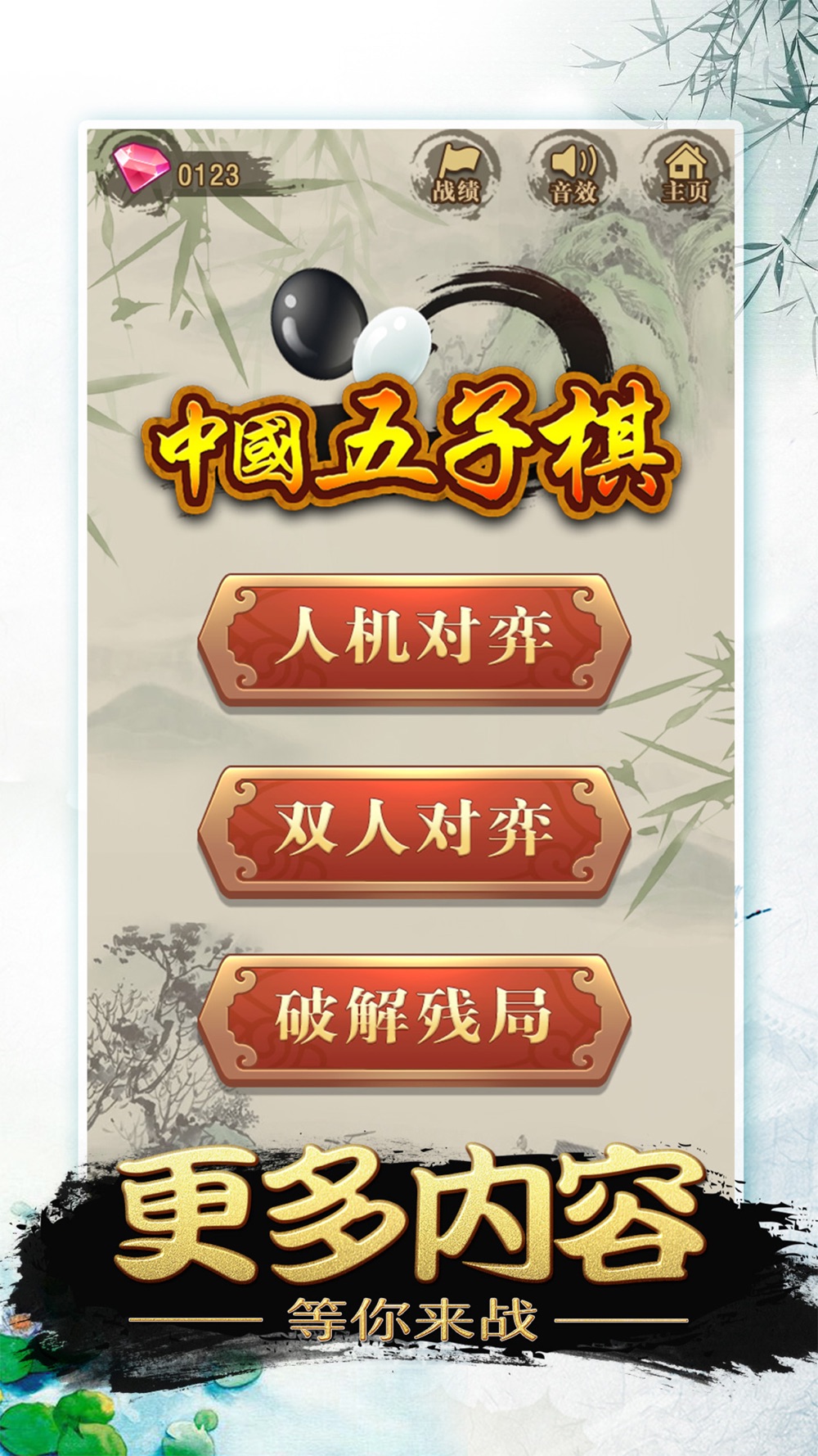 中国风棋盘,清新的界面,宛如一幅宁静曼妙的酒仙网山水画,从五子棋新手变成五子棋大师,循序渐进,完美蜕变,战绩记录你进步的过程。