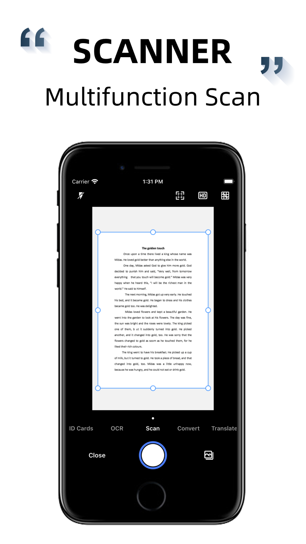 Fast scan documents, automatic edge recognition, automatic clipping, perspective correction, provide a variety of filters for you to choose, one button generation of PDF format, support to add/remove watermark, adjust page number, size, set PDF open password, etc.