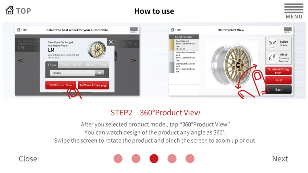 Swipe the screen to rotate the product and pinch the screen to zoom up or out.