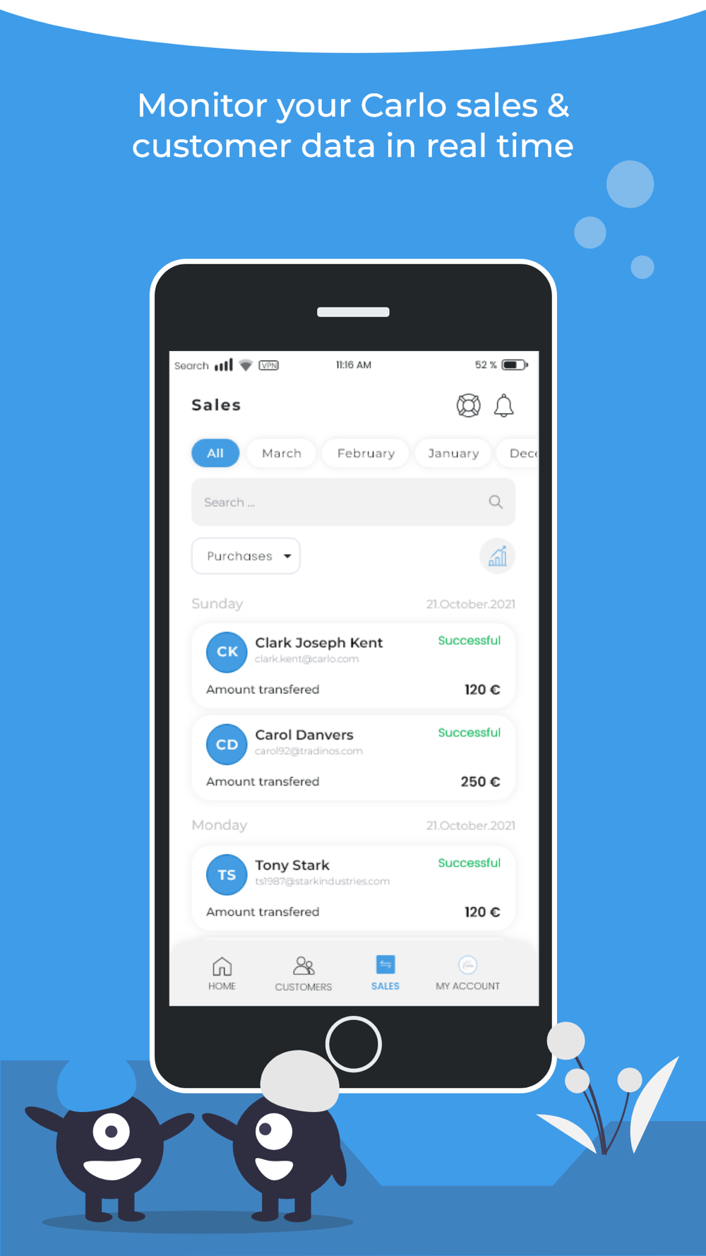 Track in-store purchases made with Carlo and get customers insights