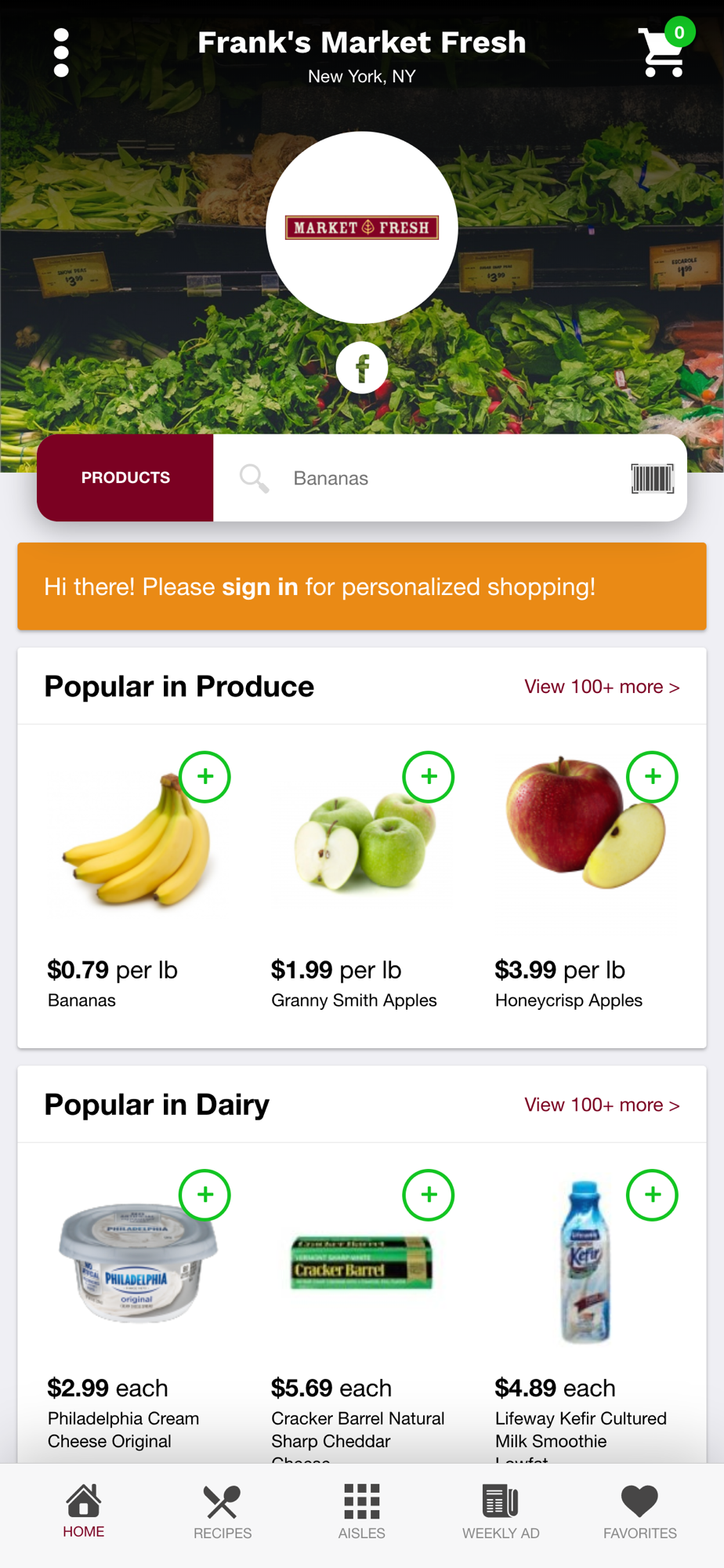 Order your groceries from Frank's Market Fresh on the go on your mobile device or from your iPad on your couch. Our award-winning grocery app makes grocery shopping a breeze with quick access to our weekly circular, an easy-to-use product search, detailed product details and labeling, tasty recipes and family meal planning tools. What could be better than that?