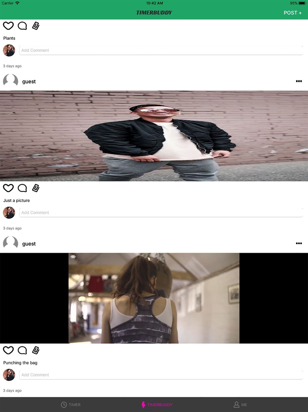 TimerBuddy is a community of like minded workout enthusiasts with a feed section to post your workout videos and posts.