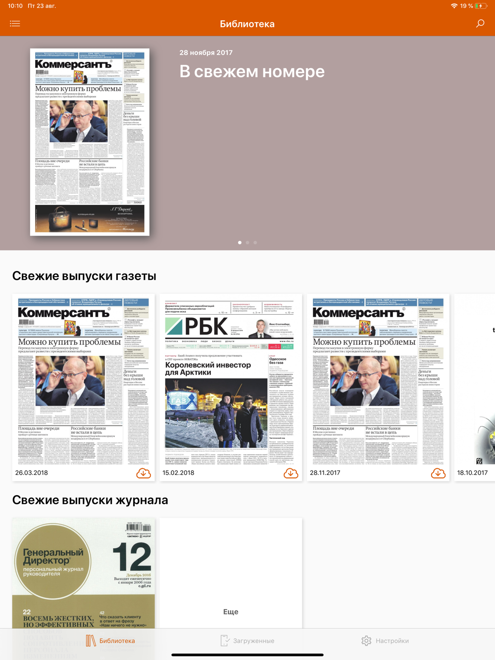 Свежие номера газет и журналов доступны каждый день к 9:00 утра московского времени.