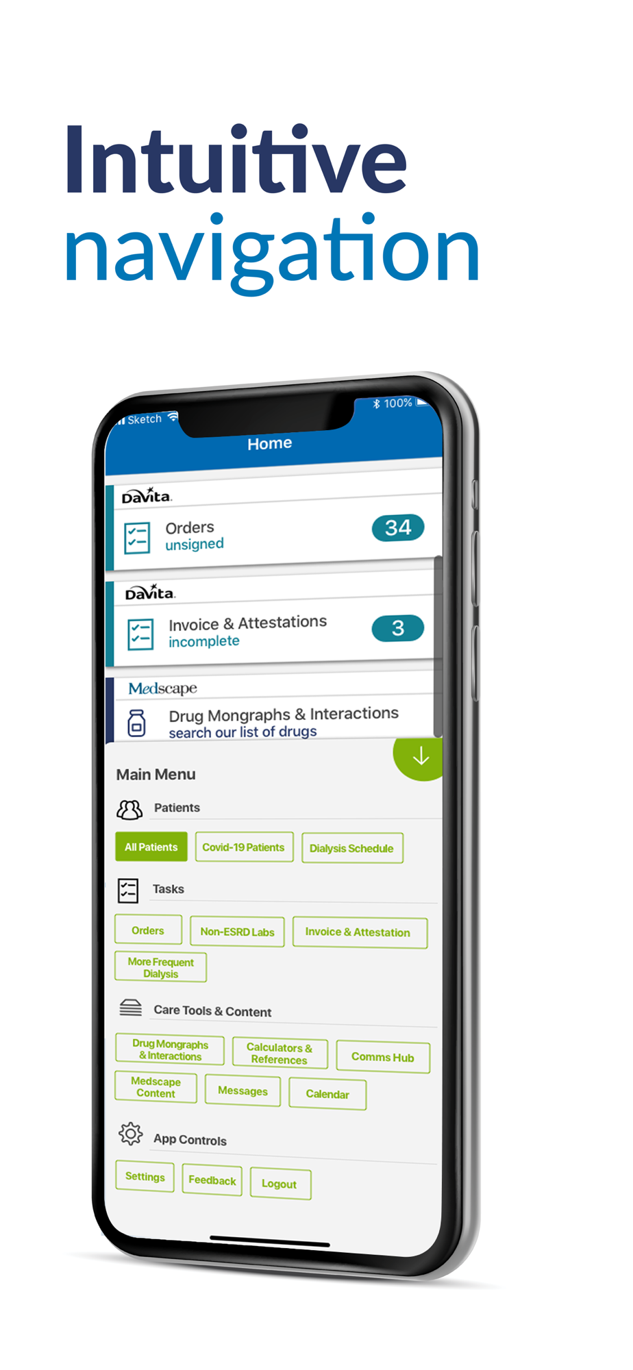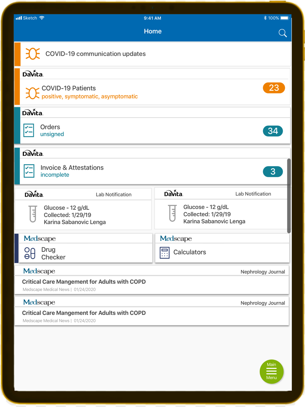 DaVita Physicians can now use one application to review orders, access Cureatr text messages, read communications, complete Medical Director attestations, search for and review patient information – including demographics, labs, medications, completed encounters and more all from their iPhone.