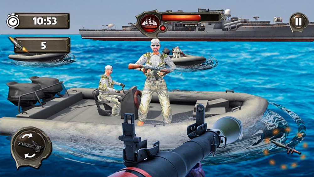 步入美国海军舰队炮手的鞋子,敌方战列舰正在驶向你的船。 使用重型机枪和火箭发射器击败敌人。 用战斗机,驱逐舰和小艇参与海洋战争。 在您的苹果手机和平板电脑上玩这个惊险刺激的射击游戏。 扮演这个动作包装海军舰队fps射击游戏作为海军突击队。