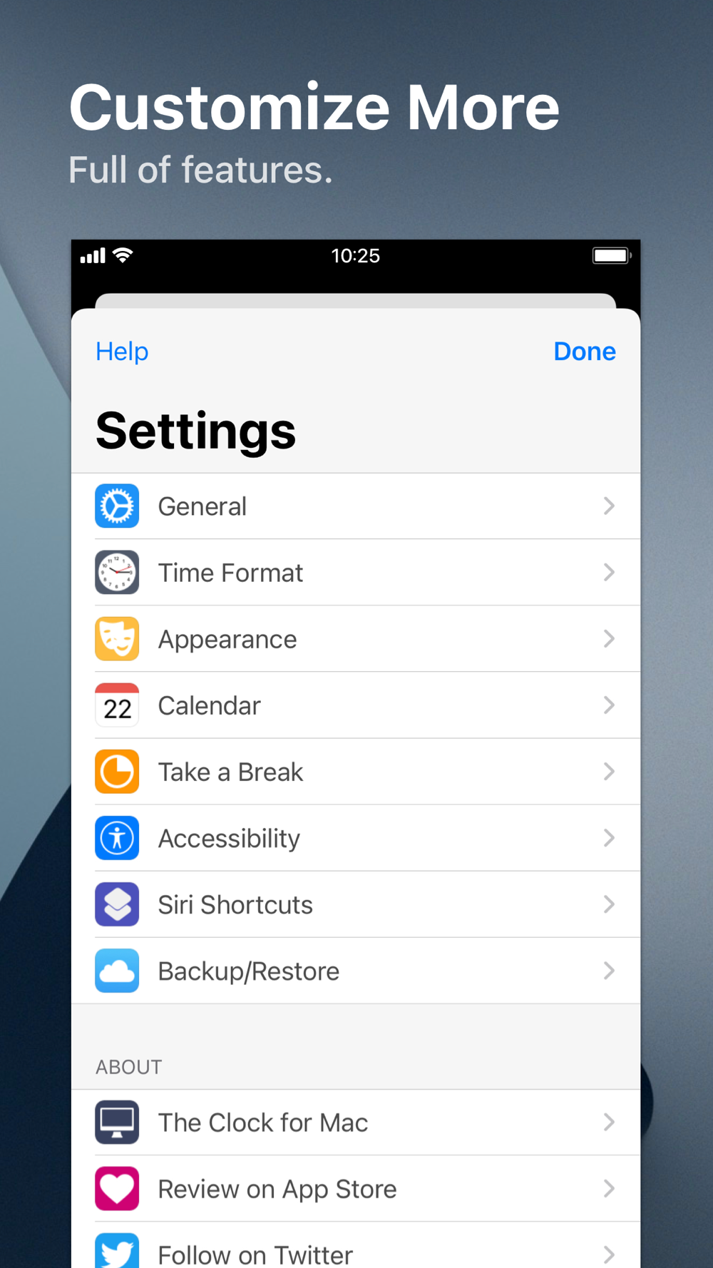 • Backup/Restore your settings easily (Local, Dropbox, iCloud).