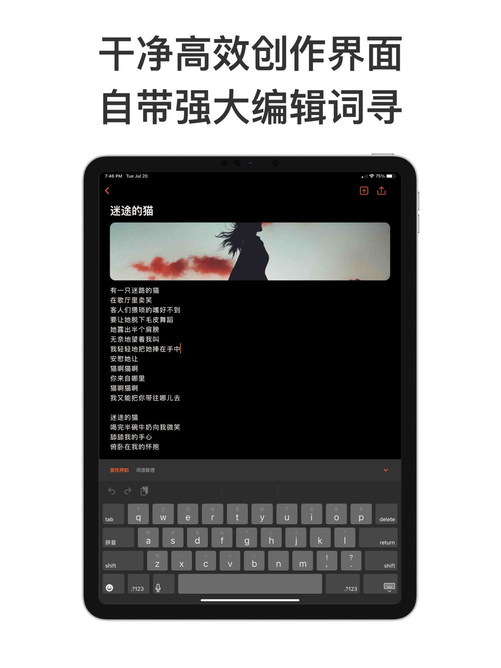 * 高效干净的歌词编辑器 不仅可以写词 还能录制音频, 不论何种灵感, 永不落下