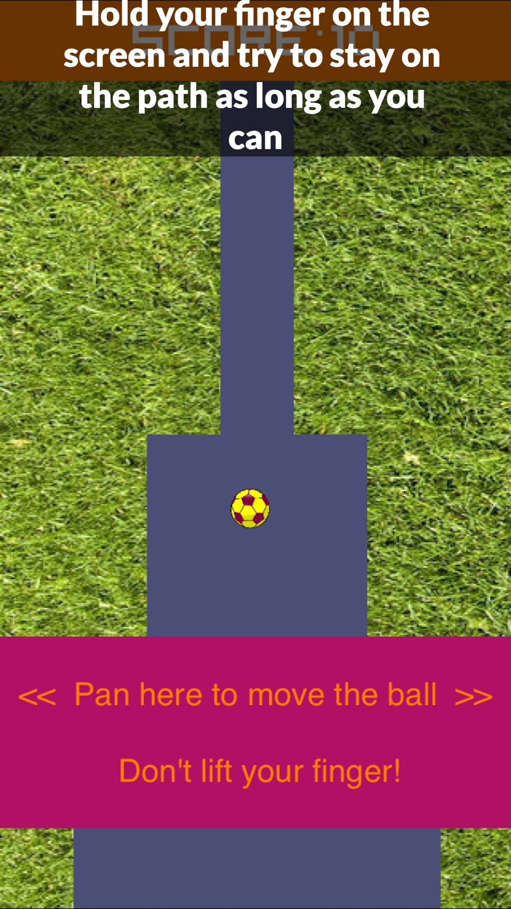 All you need is to drag your finger on the screen to move the ball either to the left or to the right and stay in the line !! But there is a twist in the tail : If you lift you finger during the game, you will lose.