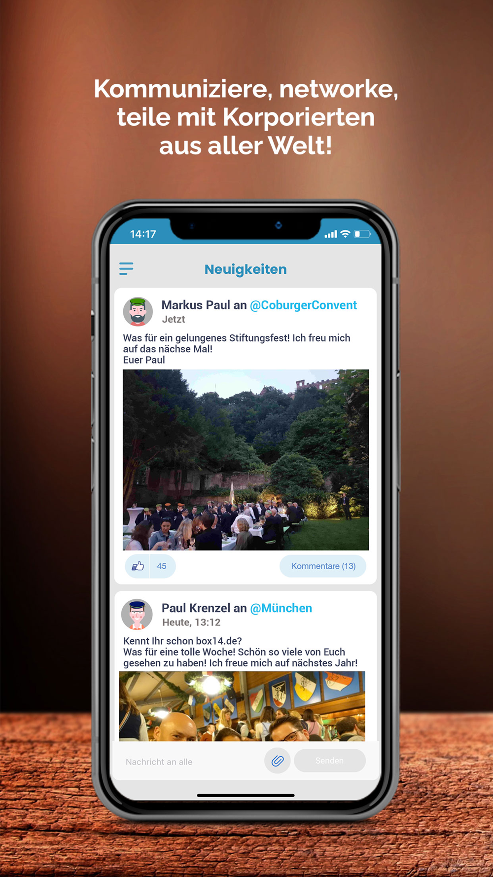 Berufliches Netzwerken, Chatten mit Bundesbrüdern, Austausch von Informationen für Landsmannschafter und Turnerschafter. Alles in einer App.