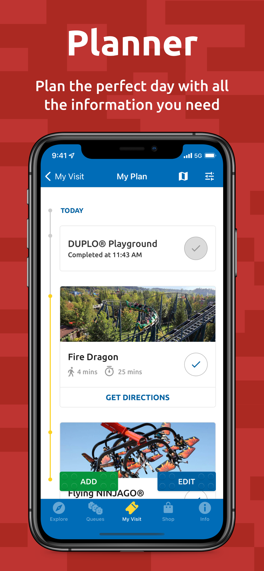 Download the official LEGOLAND® Deutschland Resort app! Whether you’re planning to zoom through real and virtual LEGO worlds on thrilling rollercoaster rides or discover the world in MINILAND, with our FREE app you’ll be able to pack even more fun into your day at the park. You’ll be able to: