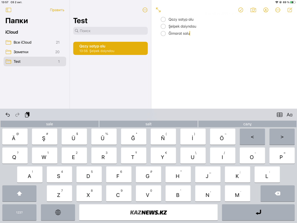 -- Казахская клавиатура появляется во всех приложениях.