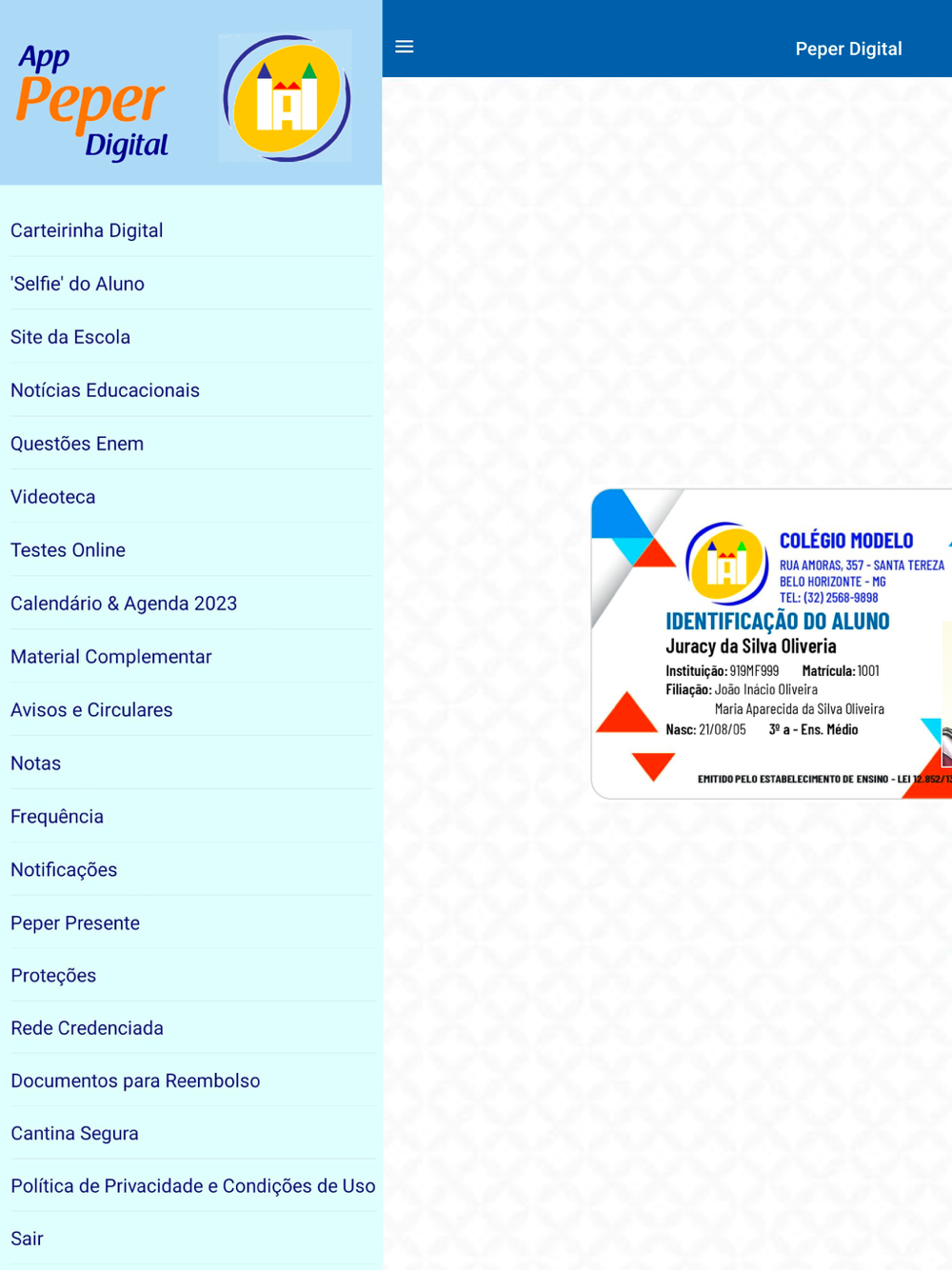A partir de agora, o aluno de instituição de ensino vinculada ao Peper que estiver ativa junto ao sistema, poderá usar a versão digital da sua carteirinha de identificação escolar onde ela for aceita e ainda contará com uma série de informações e funcionalidades personalizadas proporcionadas por este app inteligente que disponibiliza dicas e instruções sobre como utilizar o seguro escolar Peper que é considerado o mais completo do país e que vem crescendo através das inovações adotadas para atender cada vez melhor as escolas e à sua comunidade.