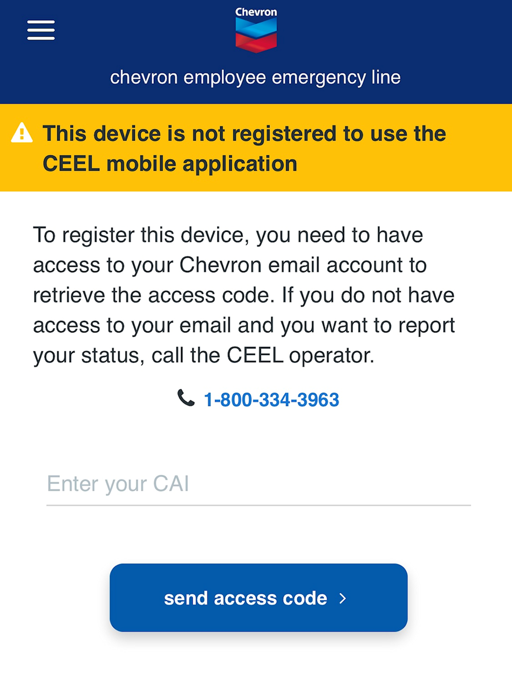 This application is used to account for all U.S. resident Chevron employees after a wide-scale emergency event.