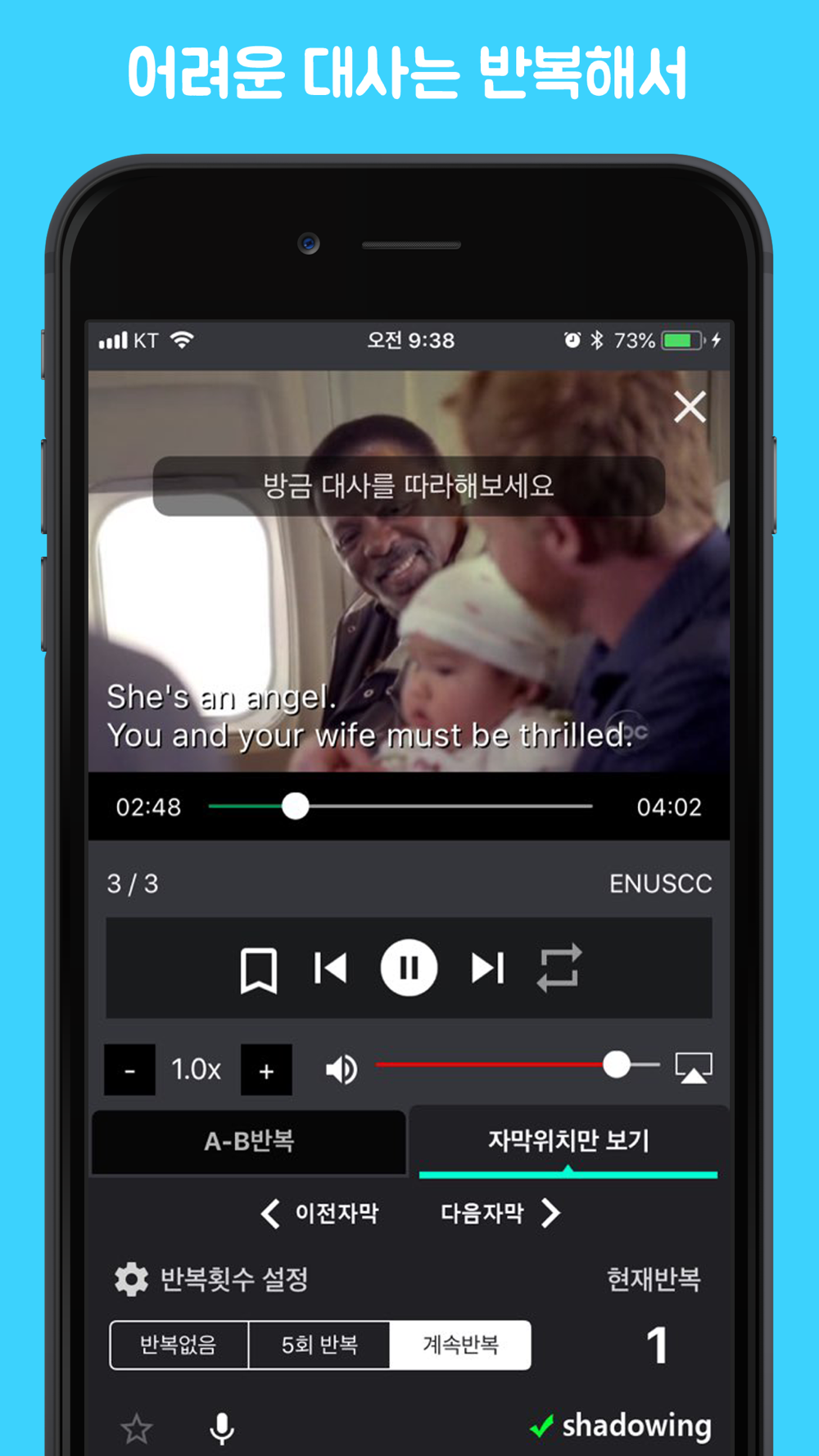 하나의 대사가 익숙해질 때까지 반복해서 연습해야 하는데 매번 반복구간을 설정해야 하는 점,