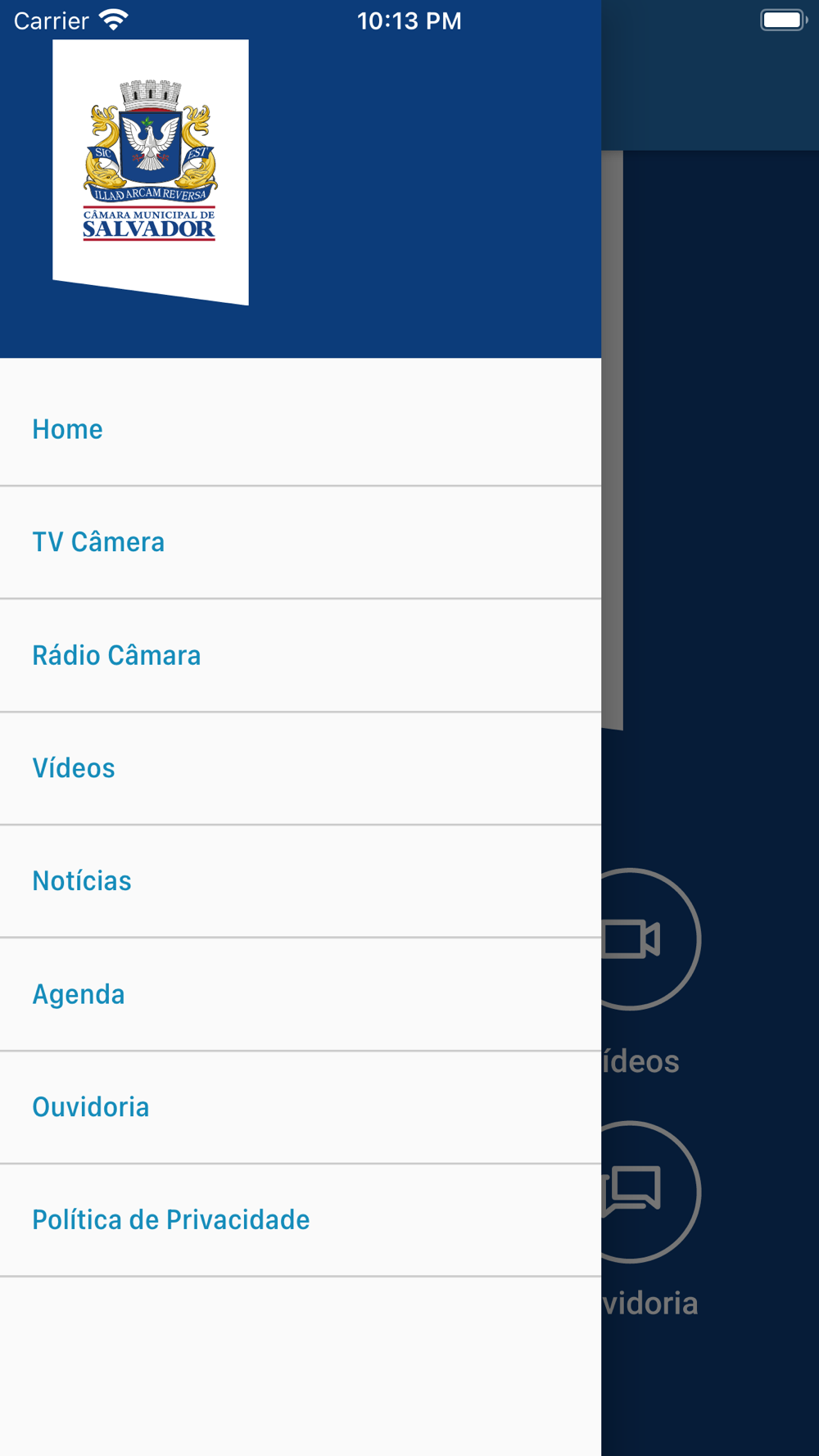 Aplicativo com informações sobre a Câmara Municipal de Salvador, com disponibilidade para a TV Câmara e Rádio Câmara.