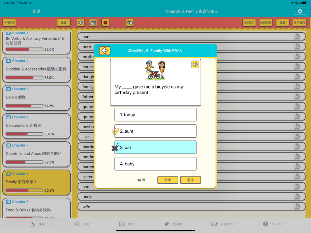 所有单词皆有音标、词性、定义、例句和翻译,并搭配生动可爱的插画,帮助您增强记忆、快乐学习。