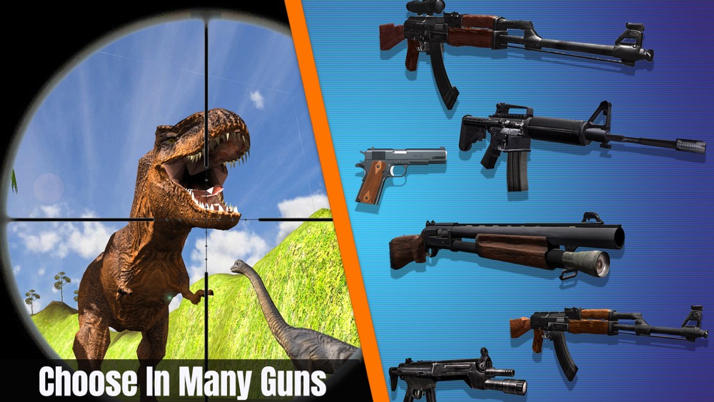 Hey! You are in a jungle with your sniper and other guns, among deadly dinosaurs’ families like T-rex, velociraptor, Tyrannosaurus and dino carnivores.