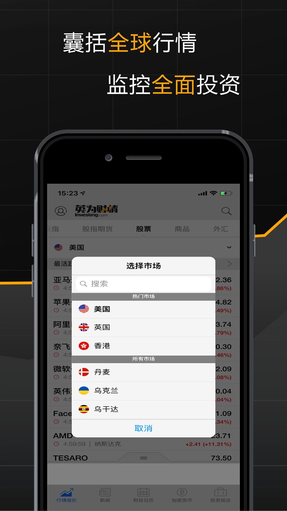 英为财情是全球第二大财经门户网站Investing.com的中文品牌,拥有44个语言版本,提供全球100多家交易所超过30万种实时行情,包括全球股票、指数、期货、债券、数字货币、基金、ETF等金融资产的数据、报价、图表以及各类财经工具、即时新闻和分析评论,是全球金融投资者和关注者的必备APP。