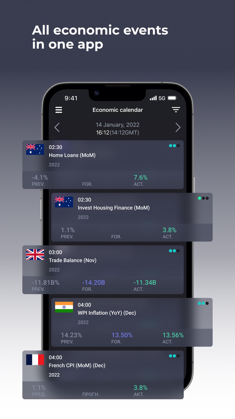 Economic calendar is a mobile application that is essential for a trader in order to track, analyze and stay up to date on all market events on the move. In addition, you can adjust the settings to filter the news feed - both in terms of relevance and impact level.