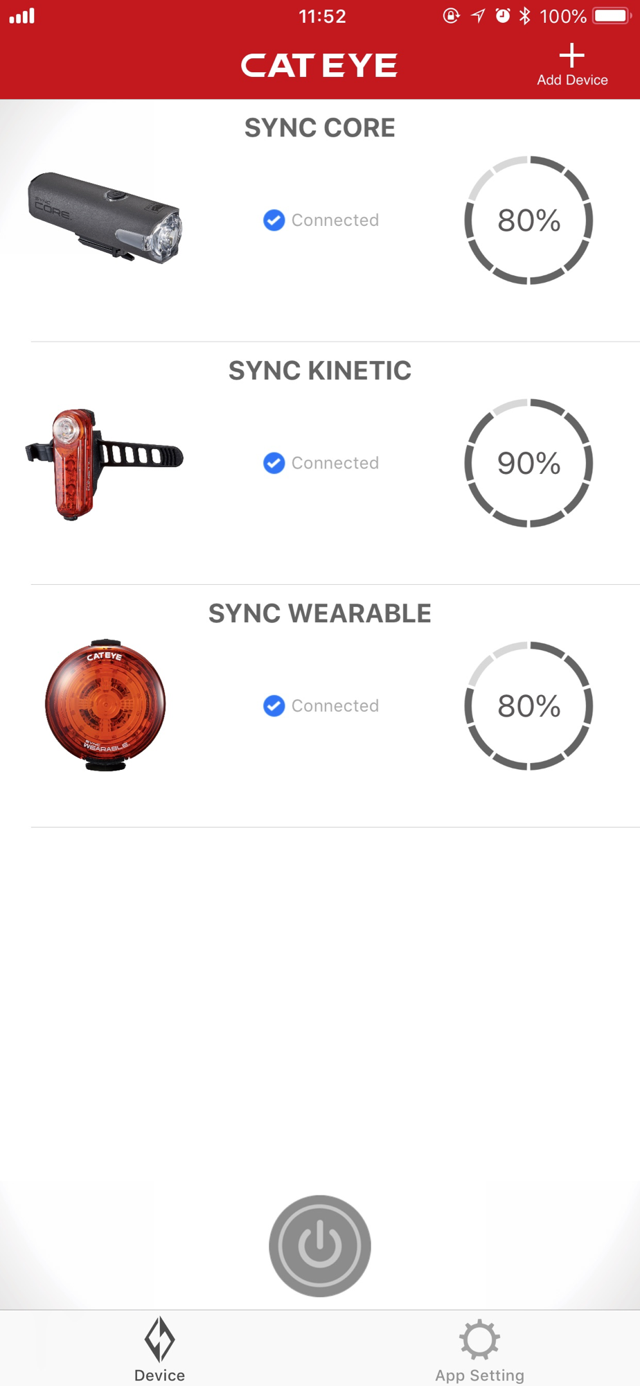 With this app, you can set up multiple Cateye Sync products to connect, customize light modes and view battery levels of each light.