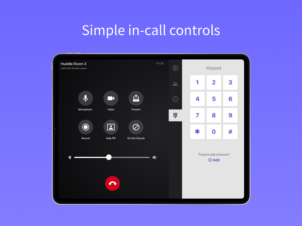 Search your company directory, start or join a meeting, share your screen wirelessly, access in-call controls, and more all with the tap of your finger.