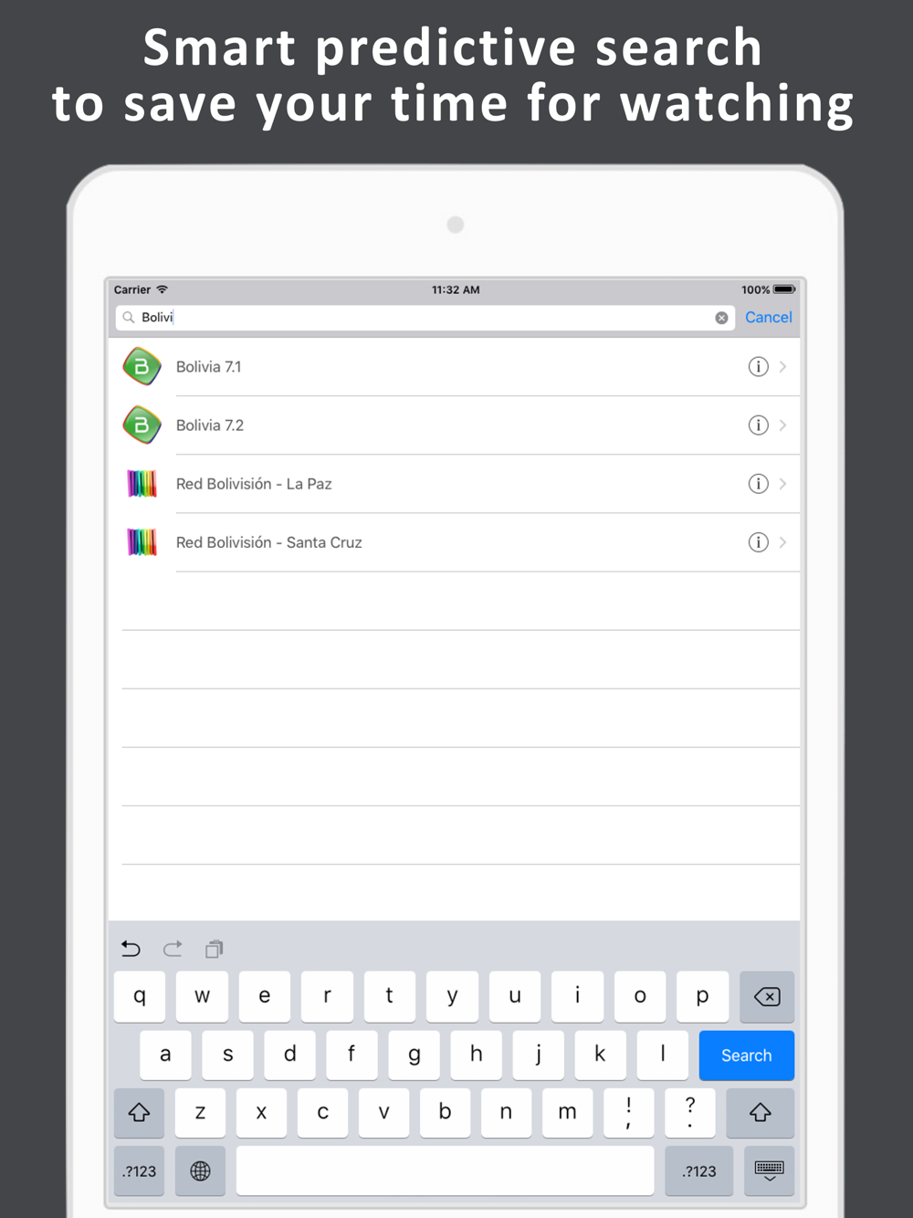 "TV de Bolivia" does not include any stored footage, recorded videos etc. There are no any videos in "TV de Bolivia". The "TV de Bolivia" does not and will not relay any channels. All data used in the "TV de Bolivia" can be found in the Internet. It is combined it in a single program. All descriptions and images used in the "TV de Bolivia" are the property of their respective owners. If you still have any questions about functionality of "TV de Bolivia" or the TV sources embedded into it, please write on the email noted on the app description in App Store.