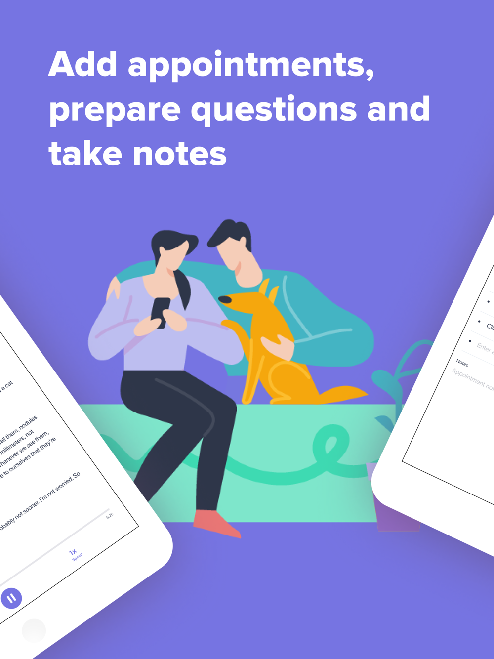 Whether it's your annual physical, or one of many appointments helping you through a complex medical issue, Medcorder eliminates stress and uncertainty in remembering what the doctor said. Appointments are often complicated and fast-paced, so having a transcribed recording of what was said can make it simple to recall your doctor's precise instructions.