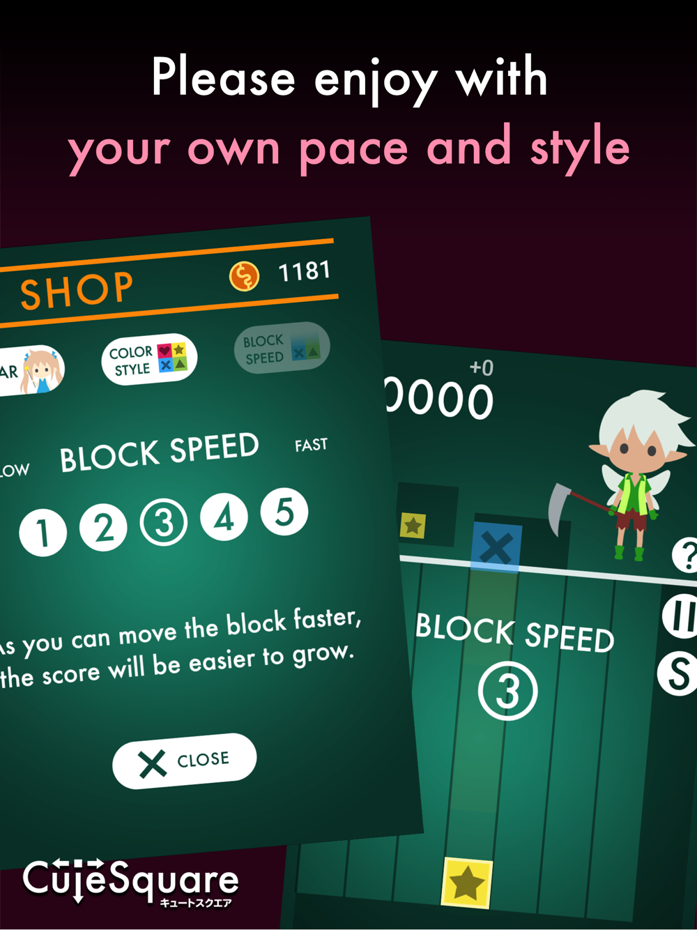 · Swipe the block in any direction of "left, right, down".
