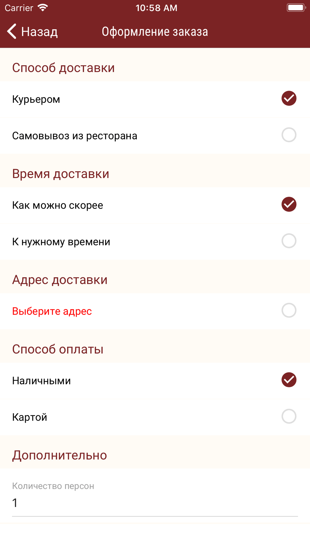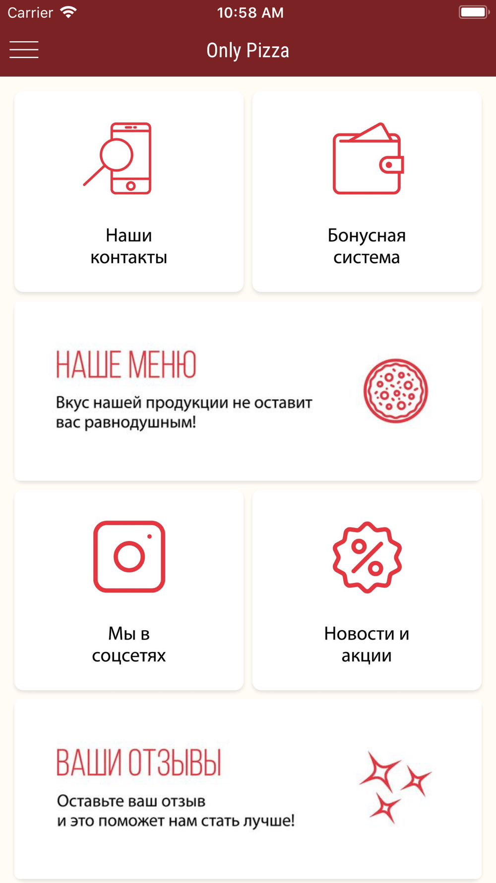 - Актуальное меню, вкусные описания и аппетитные фото;