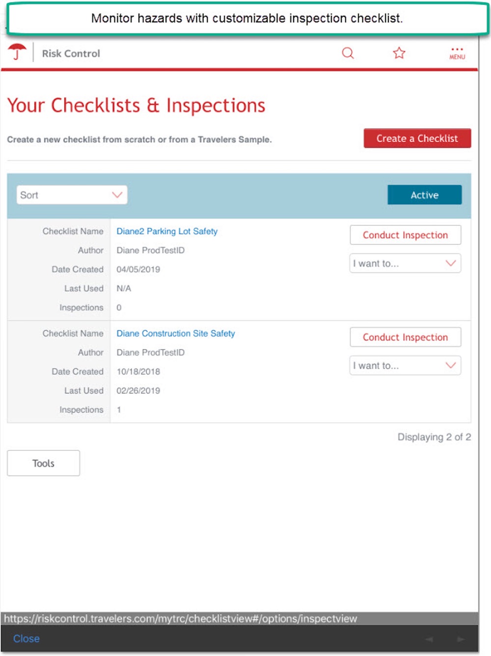 • Customizable Inspection Checklists, to help you monitor hazards and take action to control them before losses occur.