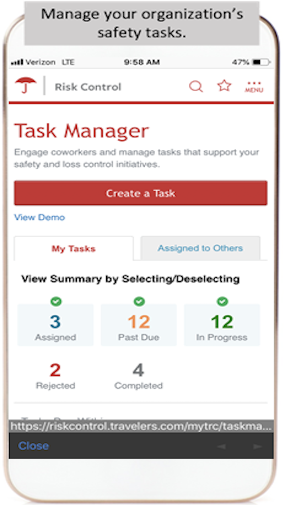 • Task Manager, to help you track and manage safety tasks throughout your organization that support your safety program.