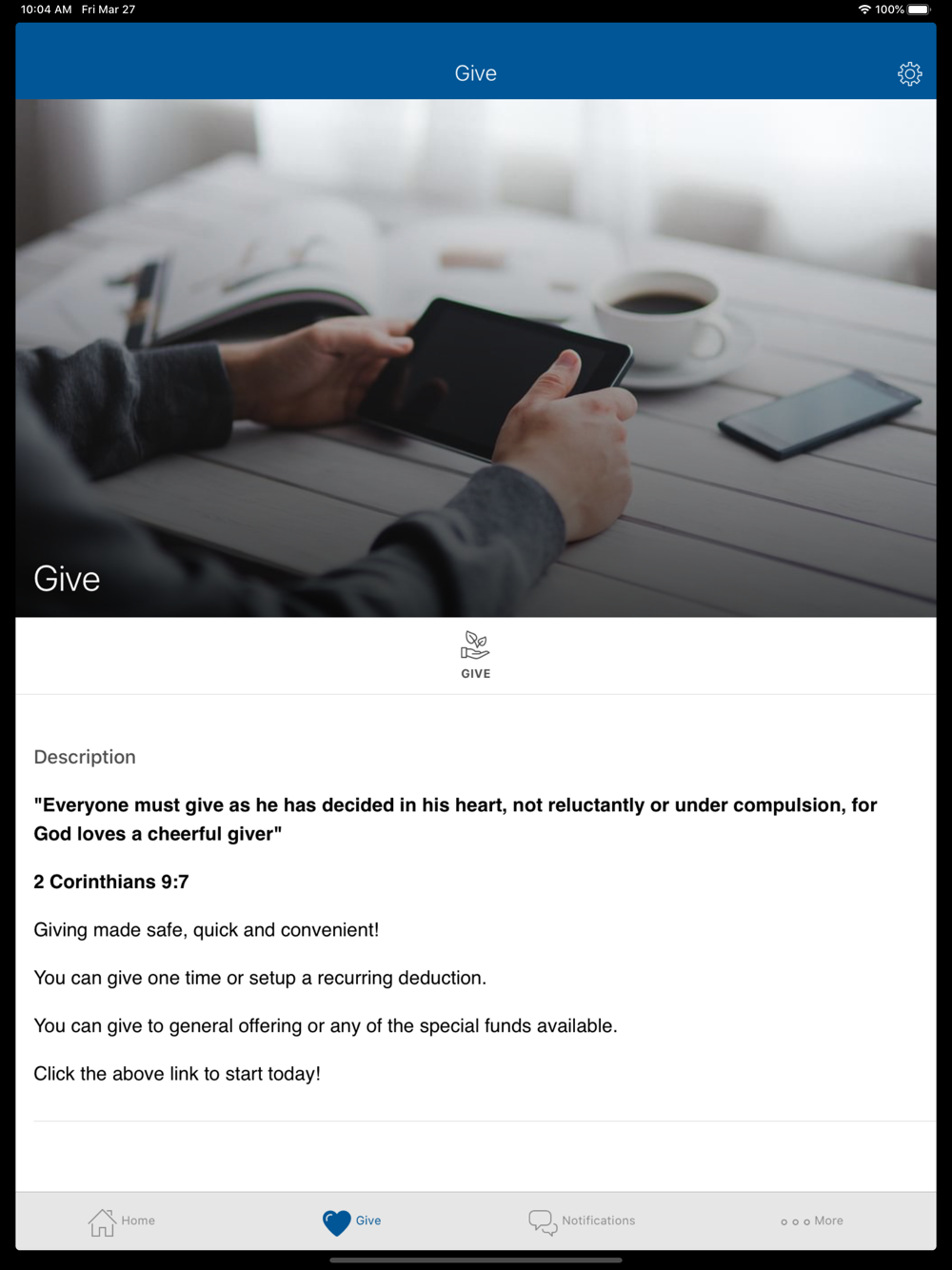 The purpose of Zion Lutheran Church is to spread the Gospel of Jesus Christ to all people through Word and Sacrament; encouraging and supporting one another as a fellowship of believers. Connect and engage with our community through the Zion Lutheran Church app. Download our app to discover media content, give a donation conveniently, or learn more about us.