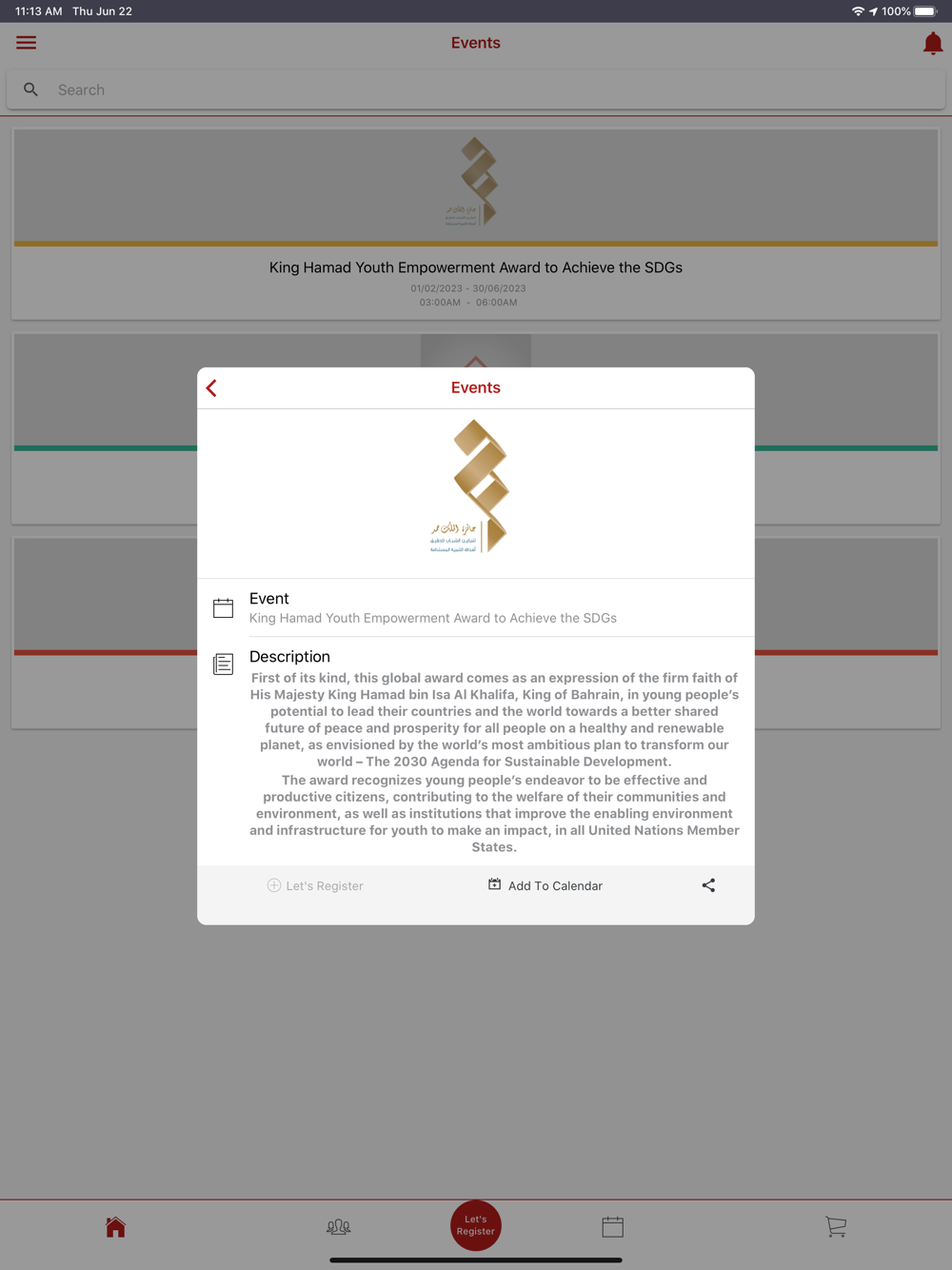 - View the list of events provided by Ministry of Youth Affairs (MYA) with the ability to register, add it to the calendar, and share the event details through social media.