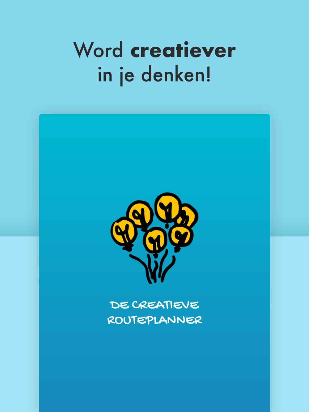 De Creatieve Routeplanner is een app die de route wijst naar het creatief oplossen van problemen. Je wordt uitgedaagd denkpatronen te doorbreken en daarmee vanuit een ander perspectief naar zijn/haar probleem te kijken. De methodiek is gebaseerd op het Creative Problem Solving (CPS) model, wat op jarenlang wetenschappelijk onderzoek is gestoeld.