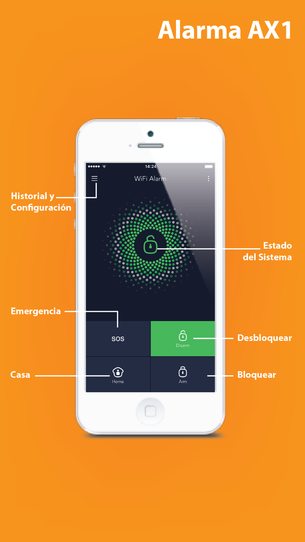 Con esta aplicación ligada a tu sistema de alarma AX1 Plus, podrás administrar tu sistema de alarma con facilidad, y cambiar el estado del sistema o configuraciones tales como armar, desarmar, agregar/remover usuarios, accesorios, sensores directamente desde tu teléfono inteligente. Y lo mejor, sin una renta mensual.