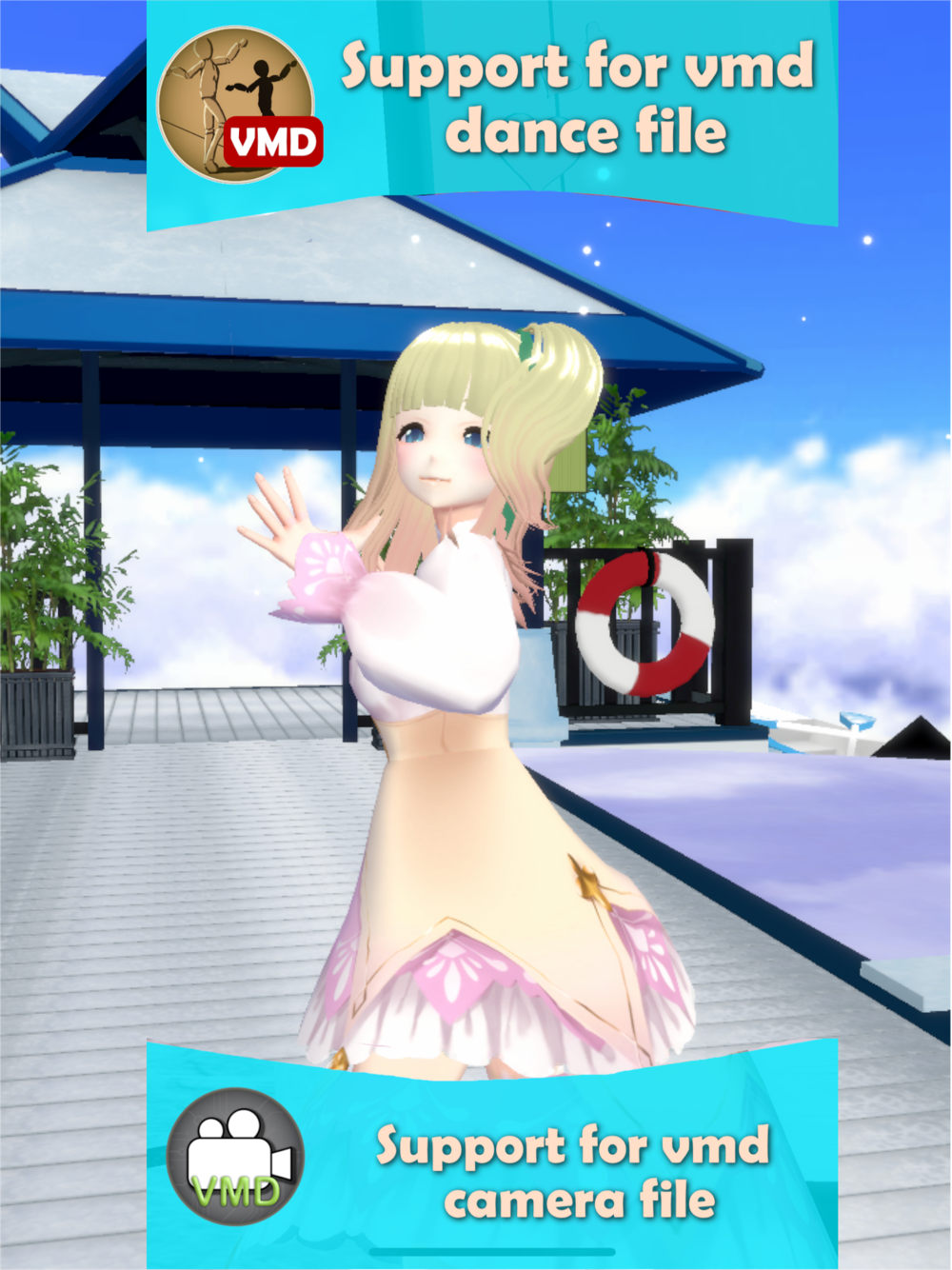 Support mmd dance files and camera files(vmd): mmd has been developed for more than 10 years, and has countless dance and camera resources on the web, you can easily use these resources to play the dance effects you want