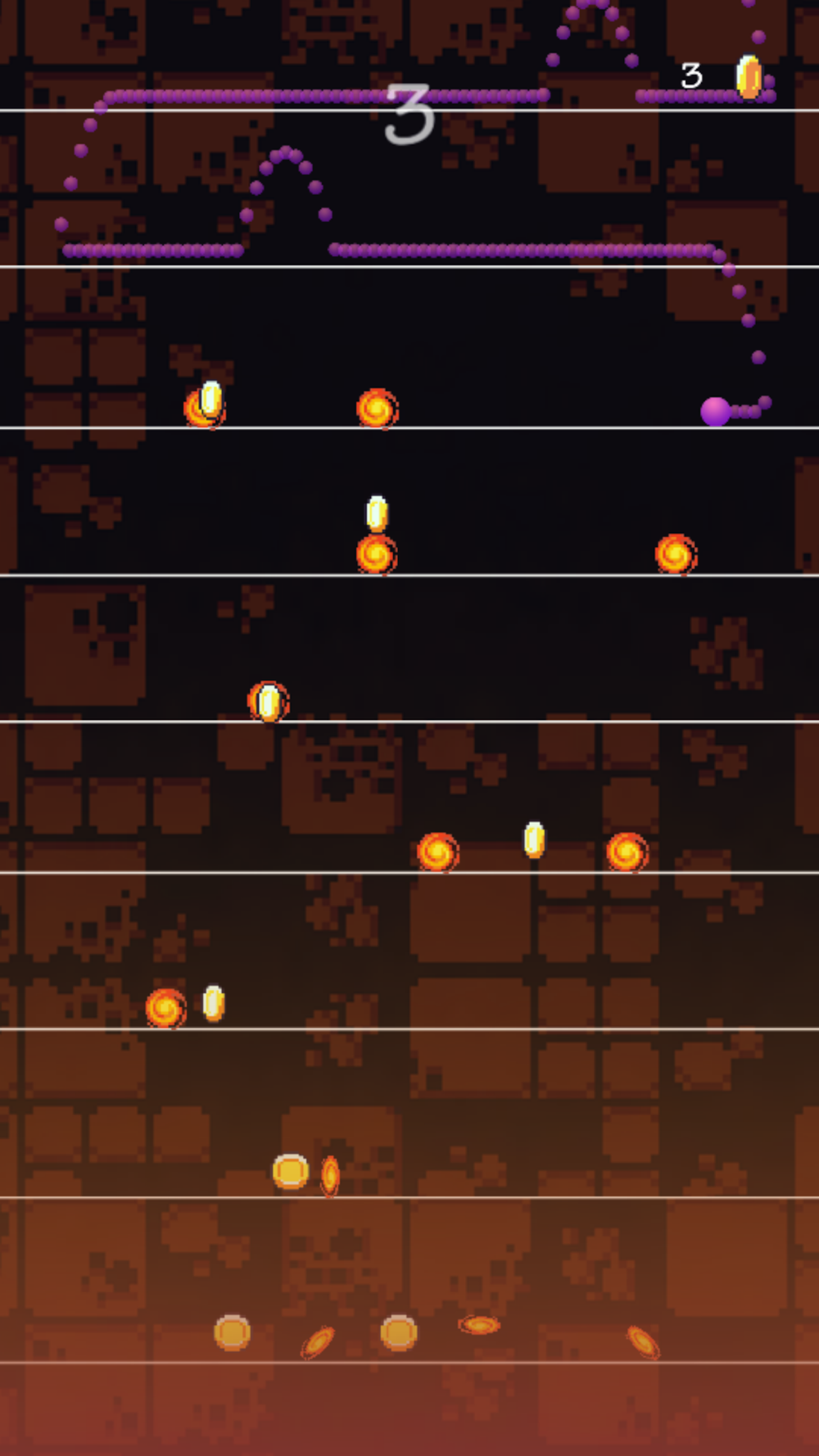 Try to jump and avoid all fire ball obstacles on your way down exploring this cave as long as you can.