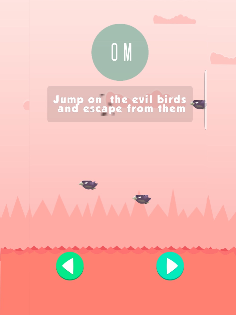 Bird jump is one of the finest jumping games out there in the market giving you the experience of making the bird go on an amazing adventure and help the parrot bird to escape from those evil birds which will stand in its way and will do anything to harm the bird. Now it is up to you to jump and evade and keep on jumping so that the parrot bird is able to escape from the evil birds by keep on jumping . But beware of the other birds other birds might not be that subtle and perhaps the jumping of the parrot bird will make them go angry and much angry that you can't even imagine which will only results in the parrot bird to falling of from a jump and failing the level.