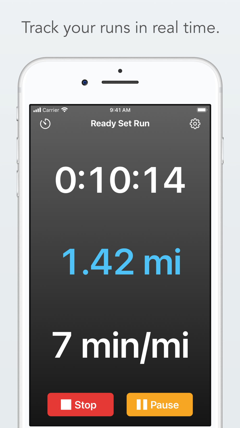 Train for your next race with the Ready Set Run app for the iPhone. Track your distance, time and pace in real time. The minimalist design with large text allows you to see at a glance how well your are performing. Your stats are saved to iCloud and Apple Health so you can track your progress.