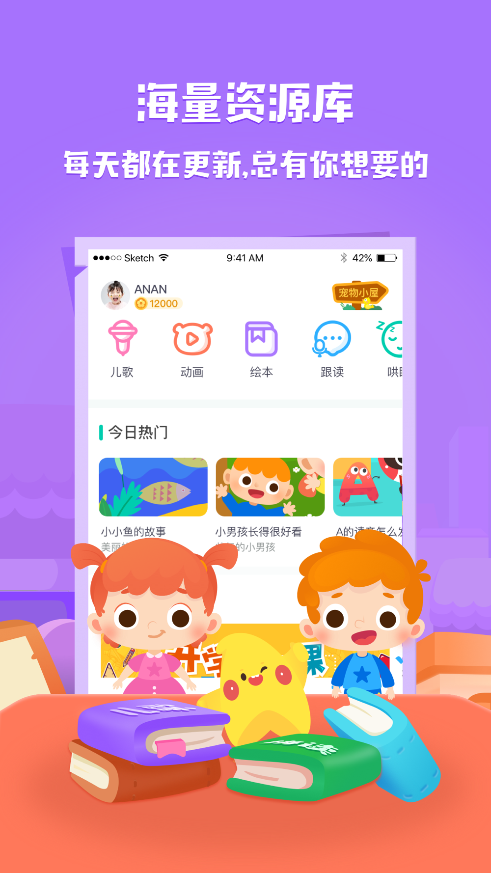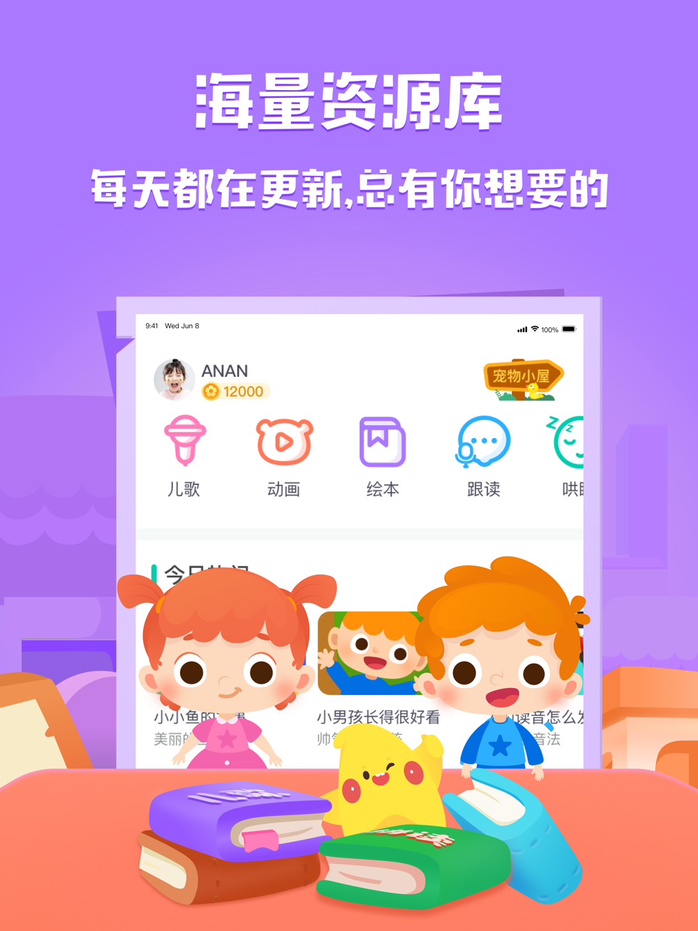 除了拥有牛津阅读树、培生朗文这样的国际品牌英语启蒙课程资源外,还有大量应用于各大生活场景的超火爆英文原声动画、儿歌资源全新上线;同时海量优质英文绘本、儿歌、动画资源,也将持续更新。