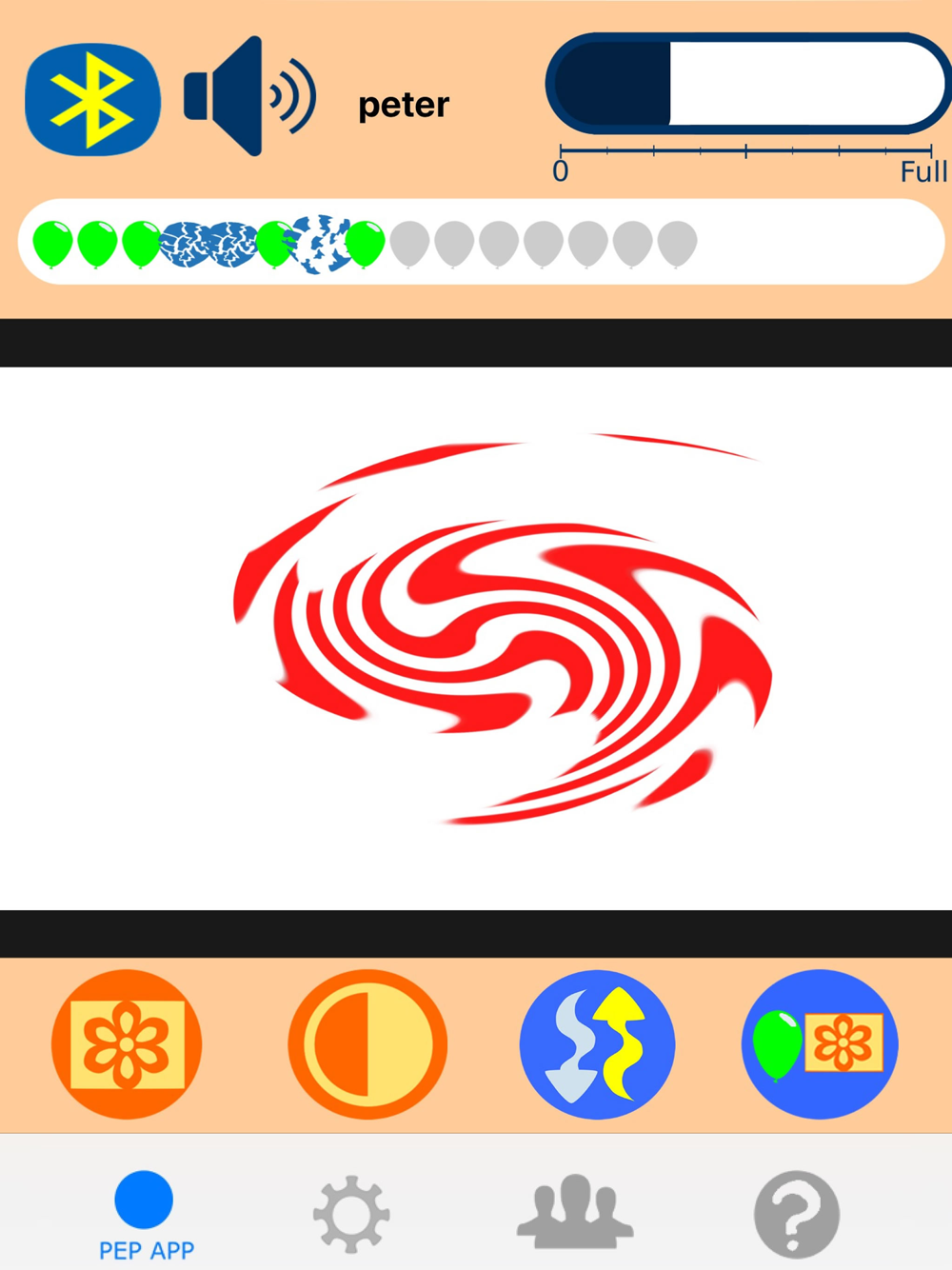 The PEP App is used in conjunction with GroovTube breathing exerciser hardware and a PEP mask. PEP stands for Positive Expiratory Pressure. It is a treatment to help people who have difficulty clearing sputum from their lungs.