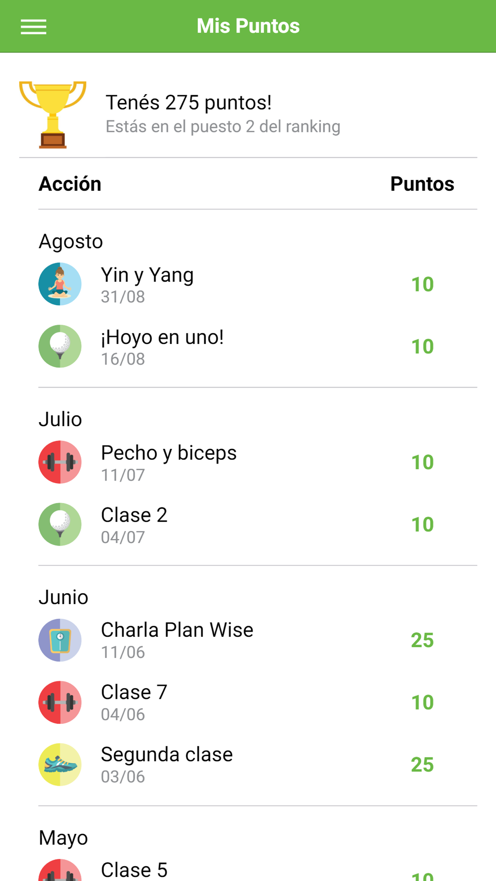 La aplicación tiene como objetivo fomentar la actividad física. A medida que una persona hace ejercicio va sumando puntos que luego puede cambiar por premios.