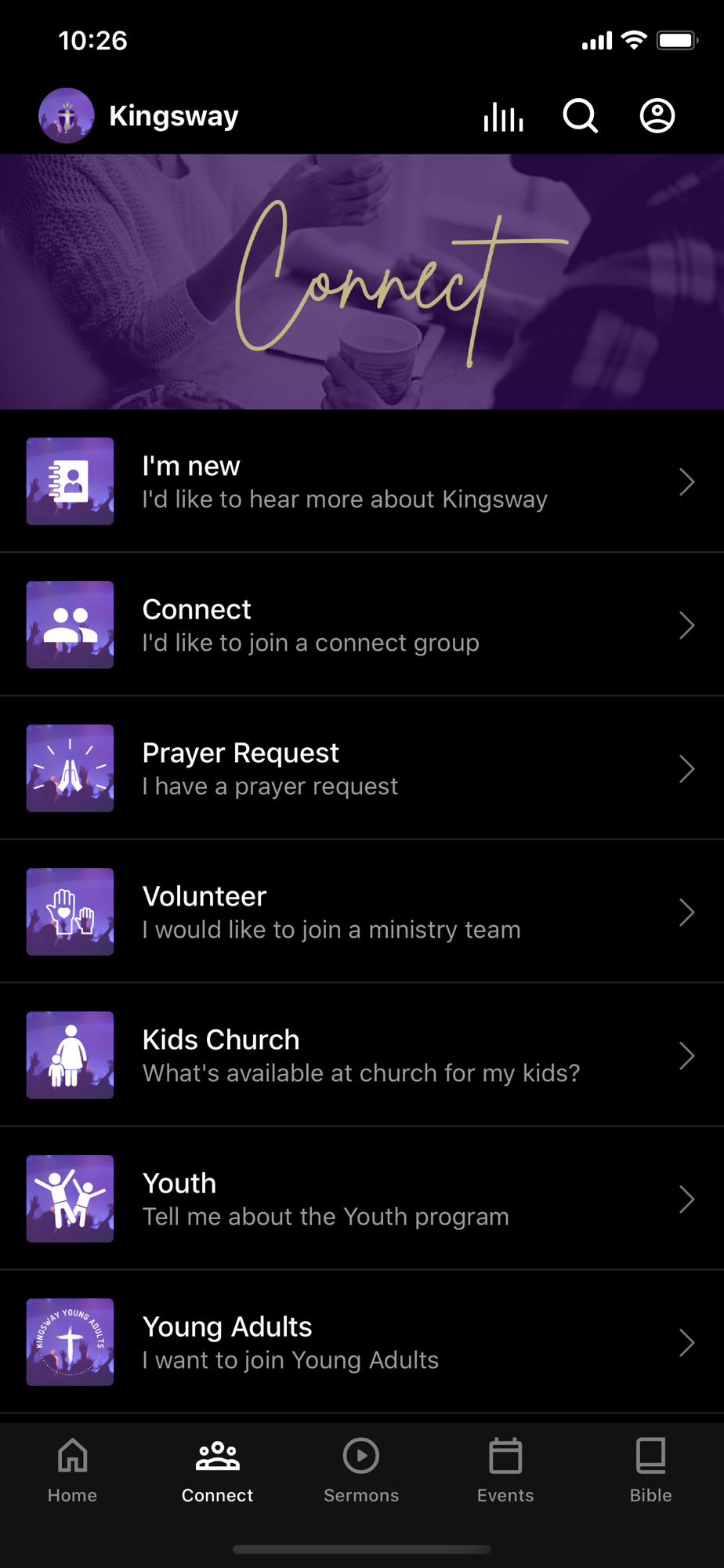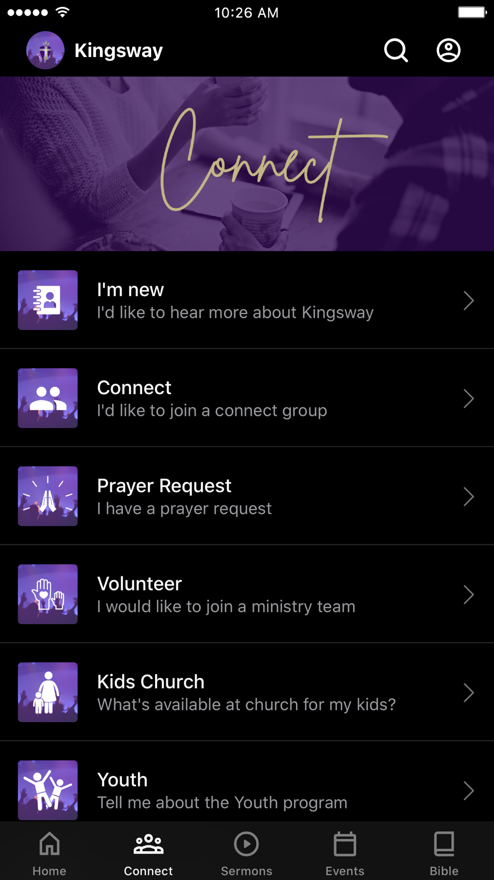 Now you can connect and engage with the Kingsway Christian Church community through this App.