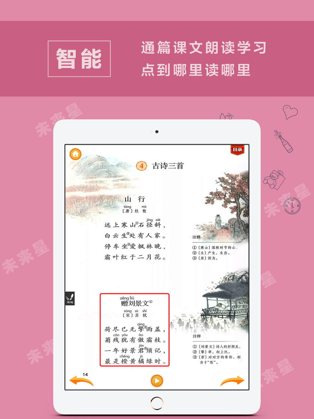 未来星学习机系列匠心制作教育产品,完全同步小学语文、数学、英语系列教材,智能点读、双语发音、高清画质,能随时随地帮助孩子学习,让您的手机变成掌上学习机!