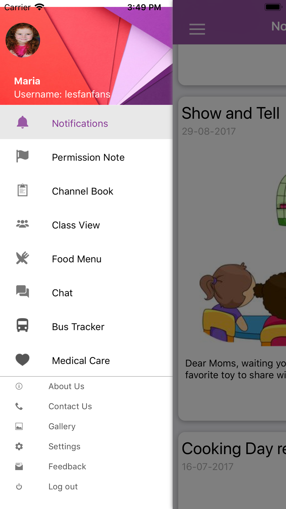 - Notify parents with the latest news, monthly newsletter, child's photos/videos, and nursery rhymes. They can share them too