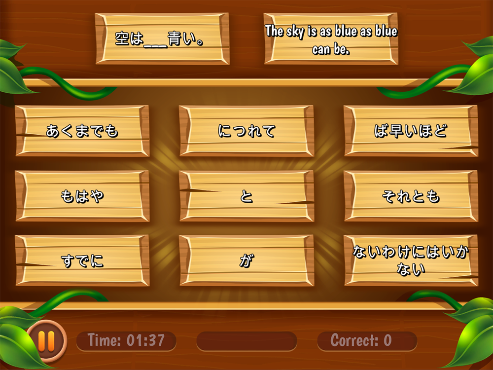 Easy Japanesey 2 is extremely simple to play: tap one of the nine answers on the game board to fill in the missing grammar point or sentence part. If you get stuck, you can also use the handy hint option to reveal additional clues to the correct answer.