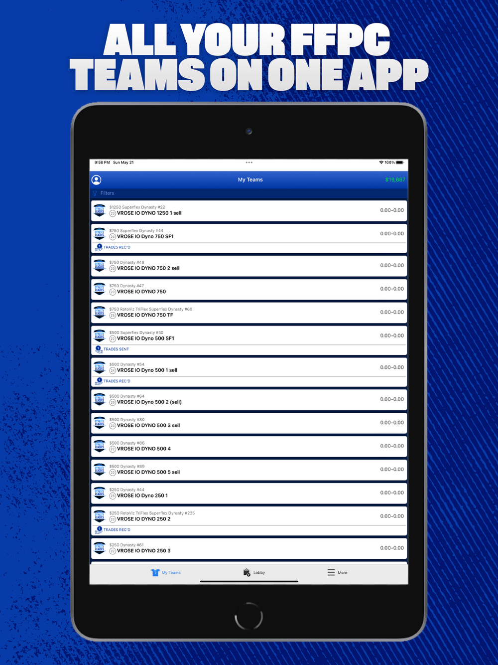 The FFPC mobile app gives everyone from first-time fantasy footballers to fantasy fanatics the opportunity to play in the most competitive season-long fantasy sports leagues with the largest prize pools in the world directly from their phones. Offered as a companion to www.MyFFPC.com, you can conveniently draft and manage your teams from the FFPC app no matter where you are!