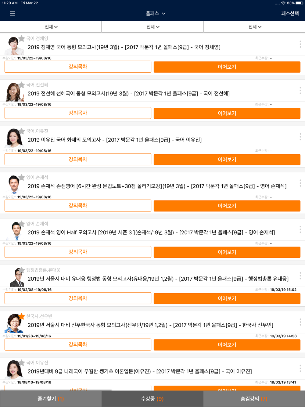 - 공무원, 경찰, 부동산, 임용 약 100개의 무료강의를 제공합니다.