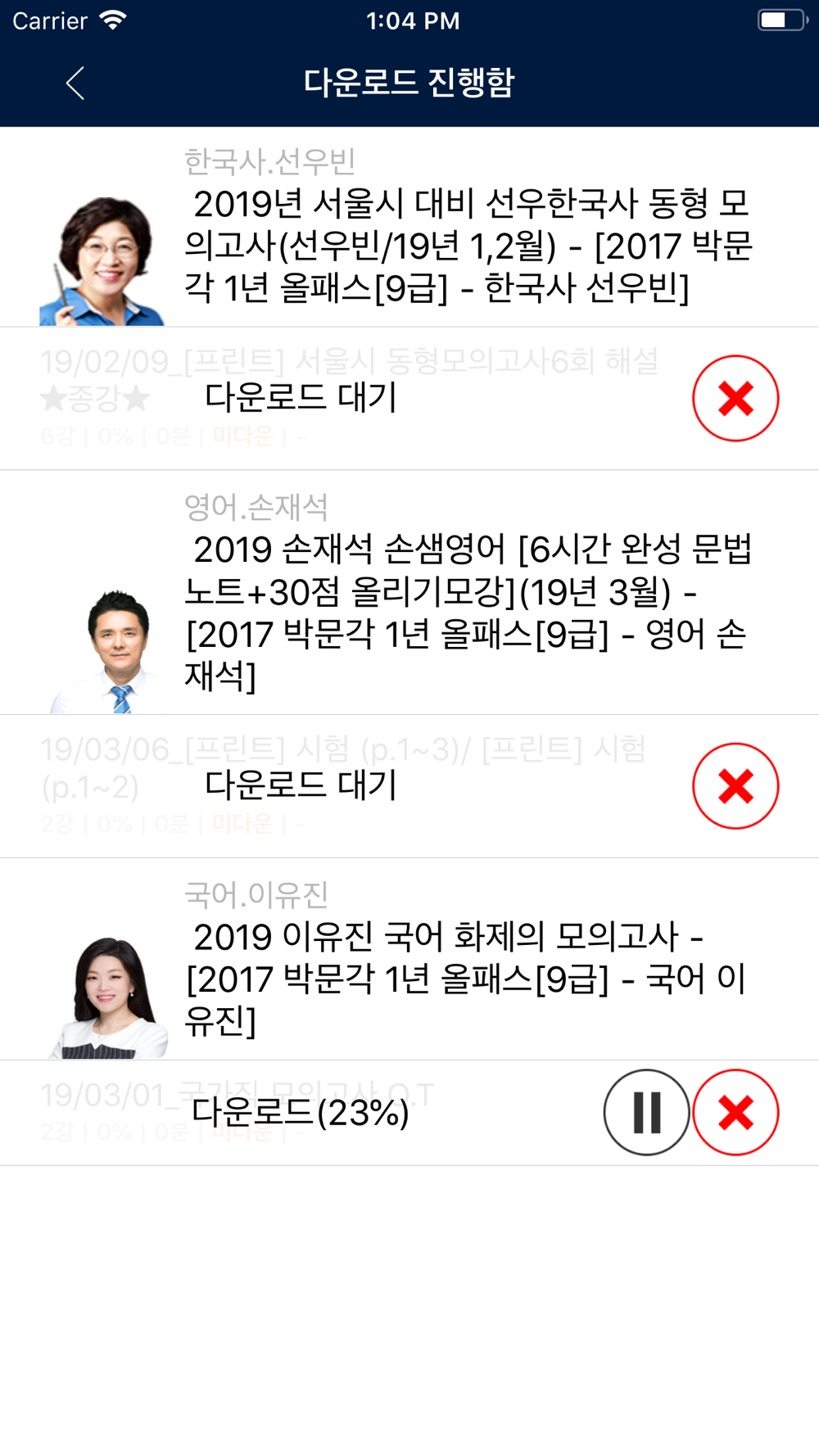 - 다운로드 중인 강의 일시정지 및 삭제, 재 다운로드가 가능합니다.